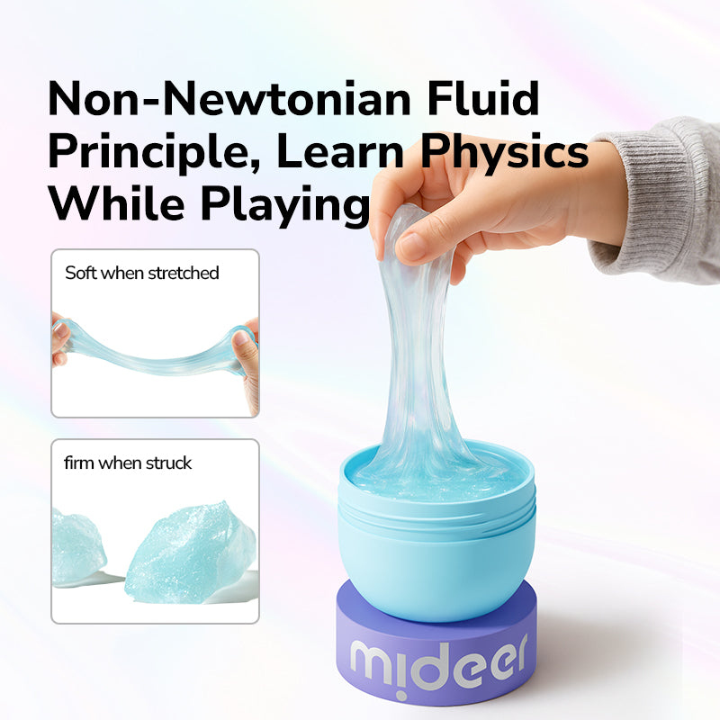 Skaidri, švelni ir elastinga sensorinė masė suteikia vaikams ne tik smagų žaidimą, bet ir edukacinę patirtį. Ne Niutono skysčio principu veikianti masė priklausomai nuo spaudimo – tempiasi, plyšta ar tampa tvirta, todėl žaisdami vaikai natūraliai susipažįsta su fizikos reiškiniais. Spindintys, šviesoje besikeičiantys atspalviai skatina kūrybiškumą ir ramina pojūčius.