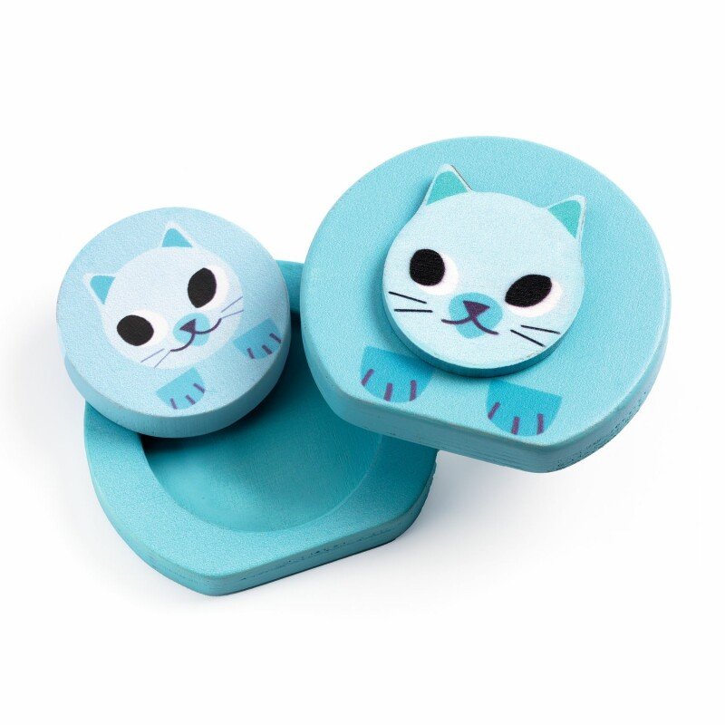 Penki atsidarantys gyvūnai, kurių viduje paslėpti jaunikliai. Gyvūnai susijungia magnetais. Vaikai turi priderinti jauniklį prie mamos panaudodami geometrines figūras. Rekomenduojamas amžius: nuo 1 metų. Kilmės šalis: K.L.R.