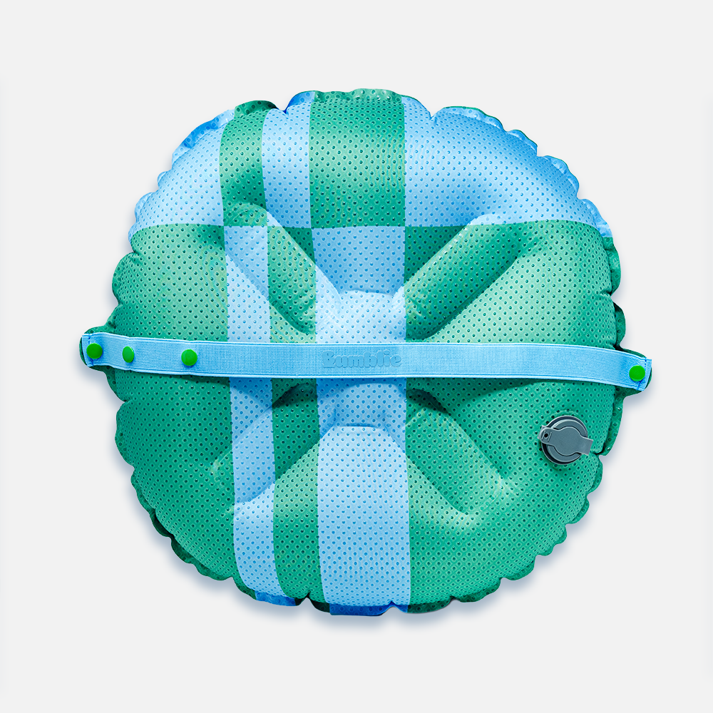 Kiekvienas „Bumblie" sėdynės paaukštinimas tiekiamas su kompaktišku saugojimo maišeliu.