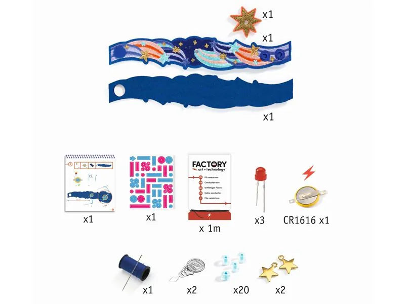 Laidininkas leidžia vaikams integruoti elektros grandines į papuošalus. Kai vaikai juda, papuošalai magiškai apsišviečia. Rekomenduojamas amžius: nuo 9 metų. Dėmesio! Netinka vaikams iki 3 metų, dėl smulkių detalių yra pavojus užspringti. Kilmės šalis: K.L.R. Pagaminta pagal Prancūzijos dizainą ir užsakymą.
