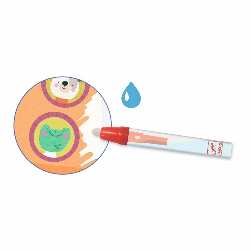 Apipilkite vandeniu nuotrauką ir atskleiskite, kas ten paslėpta! Magiškas efektas! Komplektą sudaro 4 nuotraukos (13 x 20 cm) ir praktiškas vandens rašiklis. Vaikai gali pakartoti veiklą tiek kartų, kiek nori. Rekomenduojamas amžius: nuo 18 mėnesių. Kilmės šalis: K.L.R. Pagaminta pagal Prancūzijos dizainą ir užsakymą.