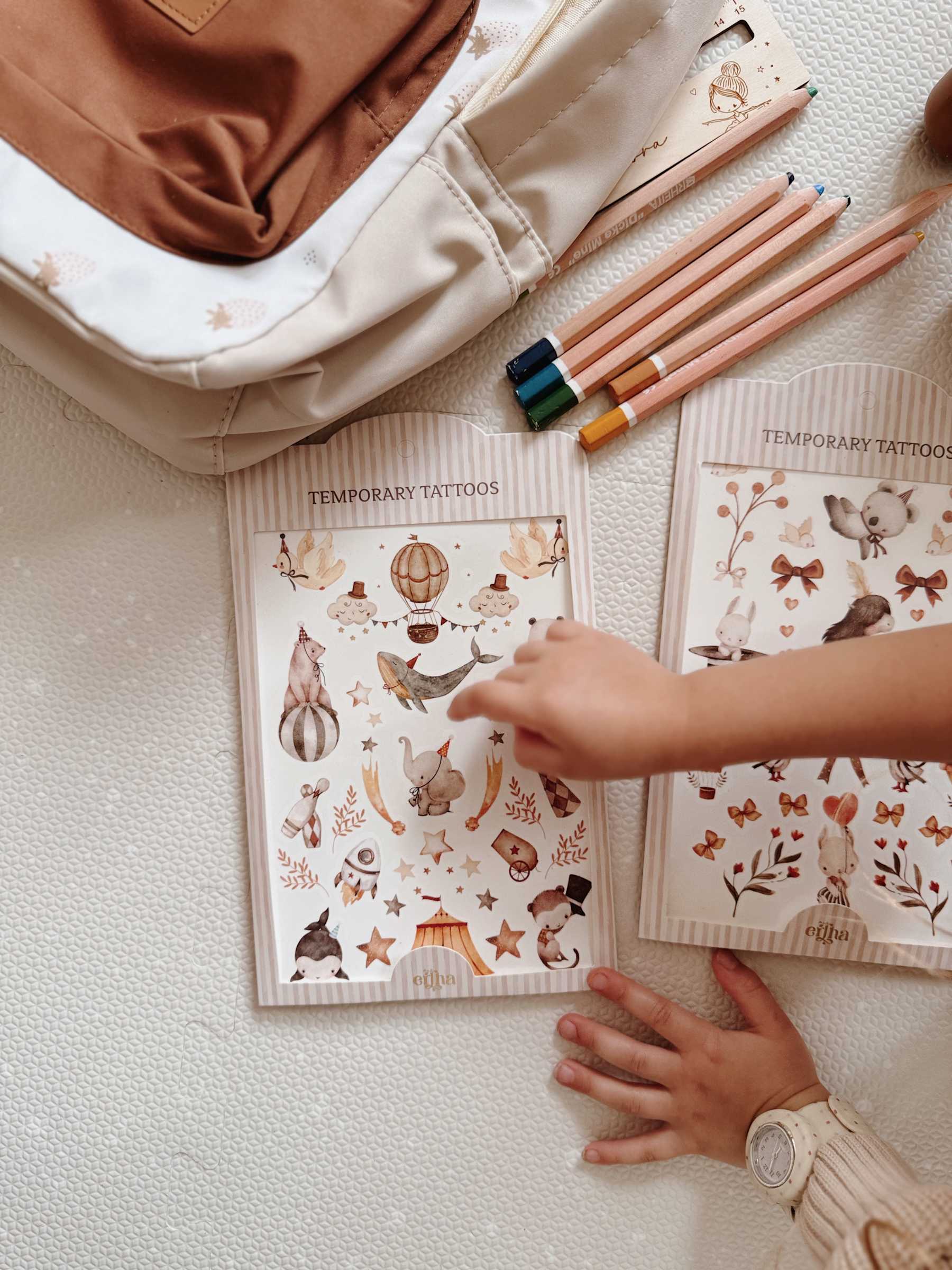 Leiskite mažiesiems eksperimentuoti su Mrs Ertha laikinomis tatuiruotėmis! Rinkinys turi 25 įvairiaspalvius paveikslėlius, kurie suteiks smagumo žaidimams ir šventėms.