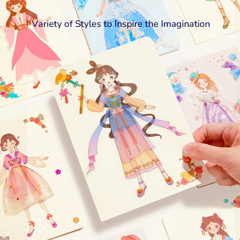 - Įskaitant: 4 kostiumų „poke“ puslapiai, 5 lipdukų puošimo puslapiai, 5 piešimo puslapiai, 2 veido dažymo puslapiai, 4 lipdukų lapai, drabužių trafaretai, 1 audinio pakuotė, 1 deimantų lipdukų lapas, 1 šepetėlis, 1 „poke“ įrankis;