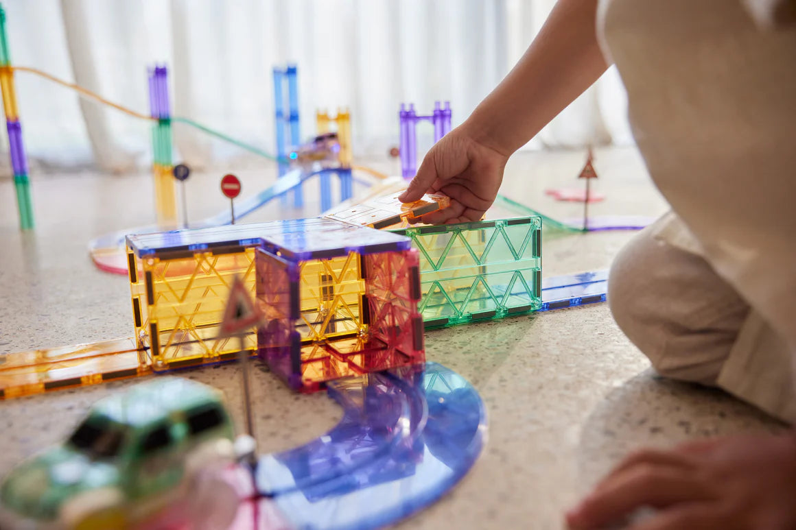 80 dalių pastelinių magnetinių plytelių lenktynių trasa