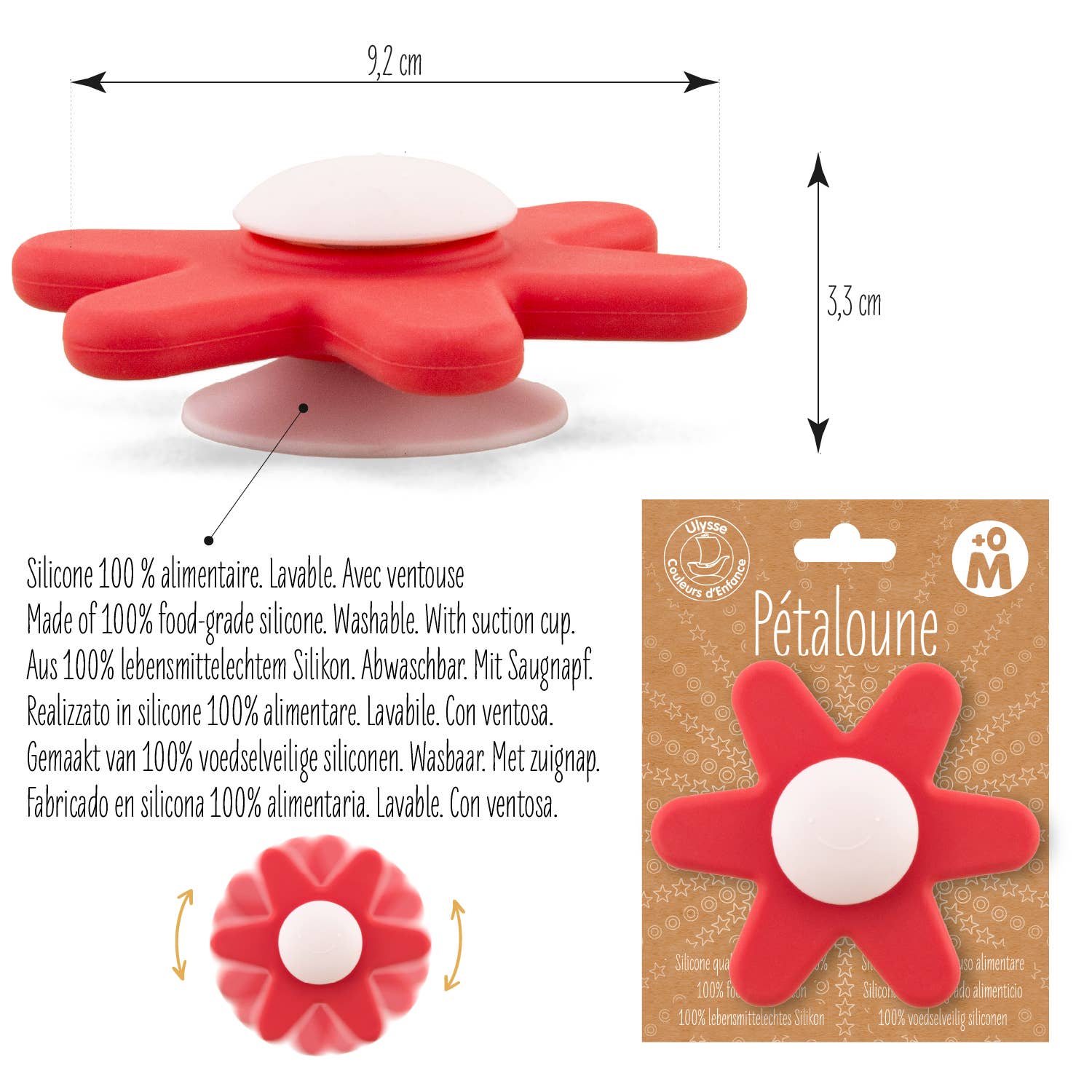 Gėlės formos su 6 apvaliais žiedlapiais – lengvai suimamas mažomis rankytėmis.