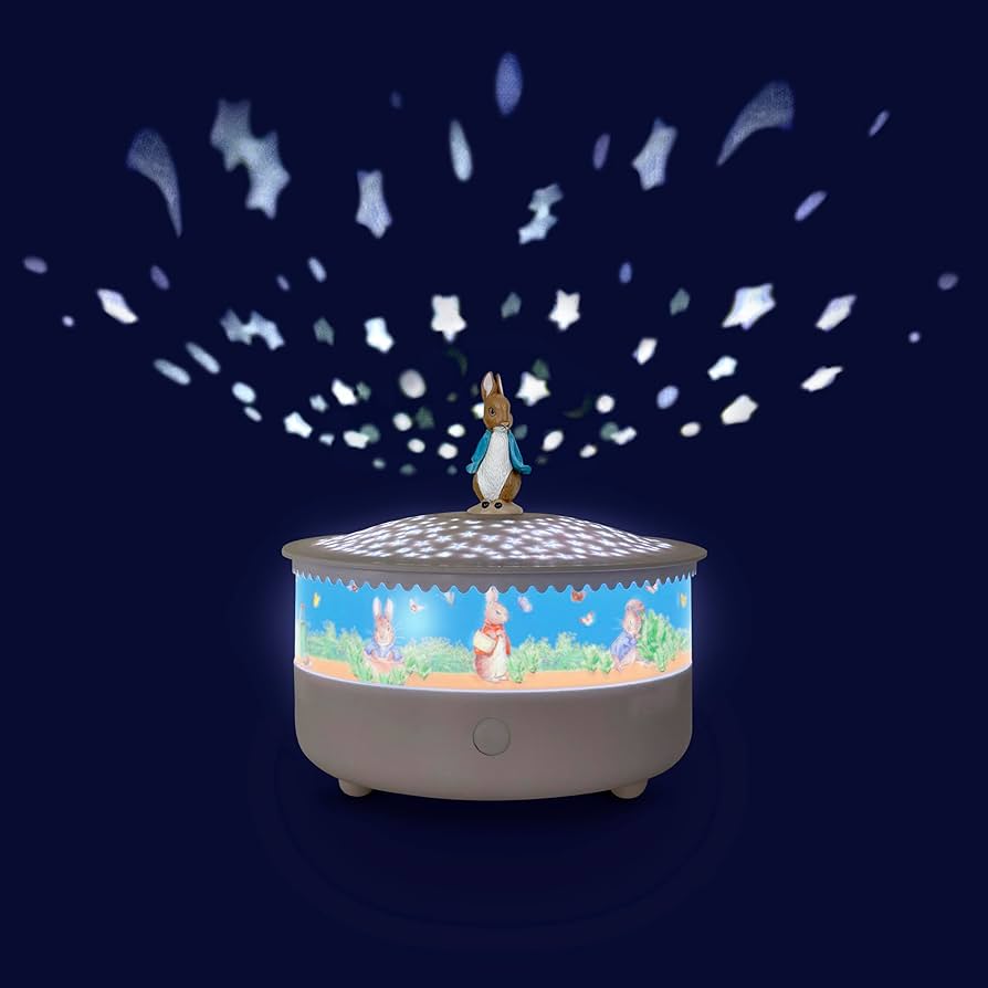 Muzikinis naktinis šviestuvas - Pierre Lapin© 14 cm žvaigždžių projektorius Įkraunamas per USB.
