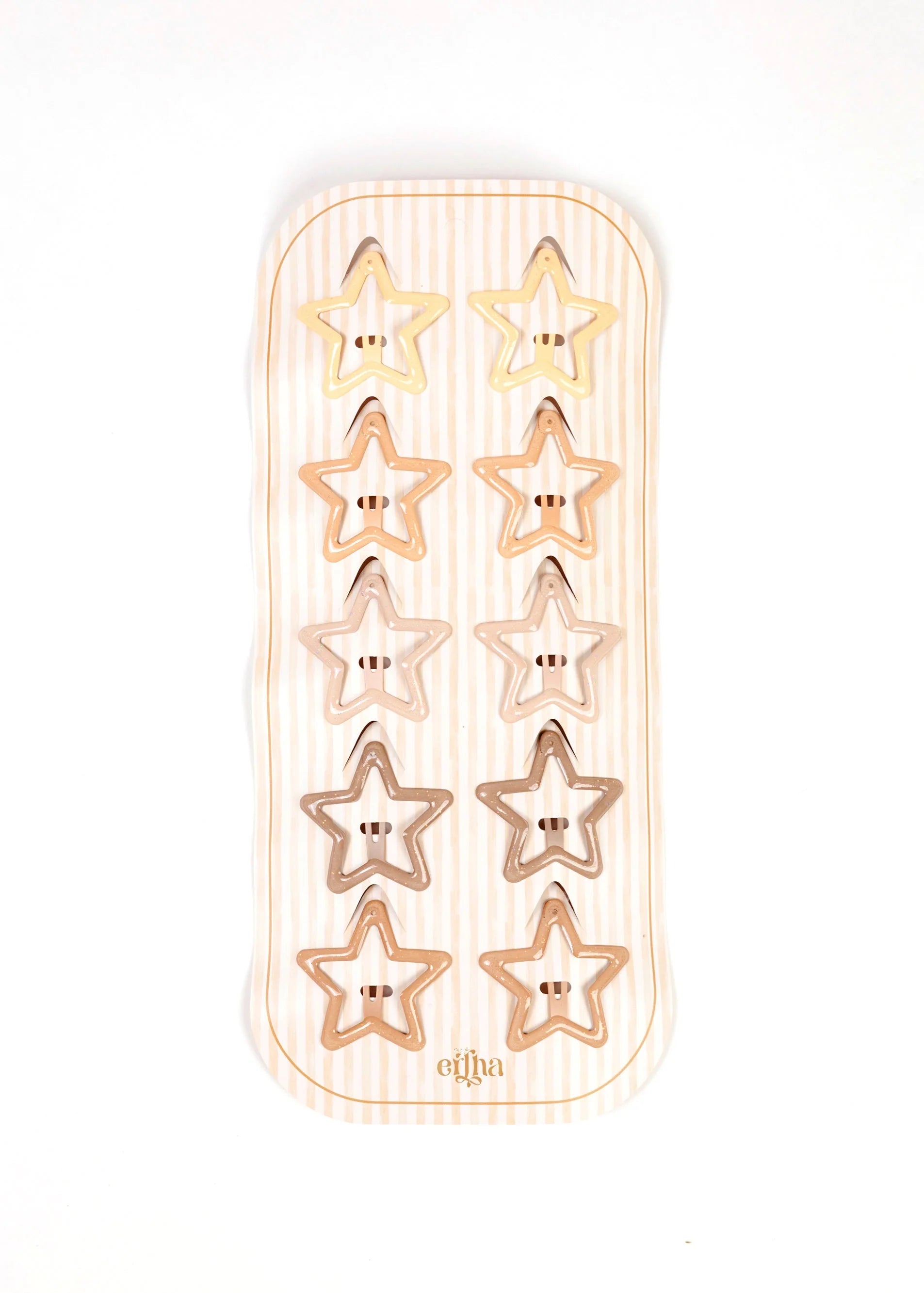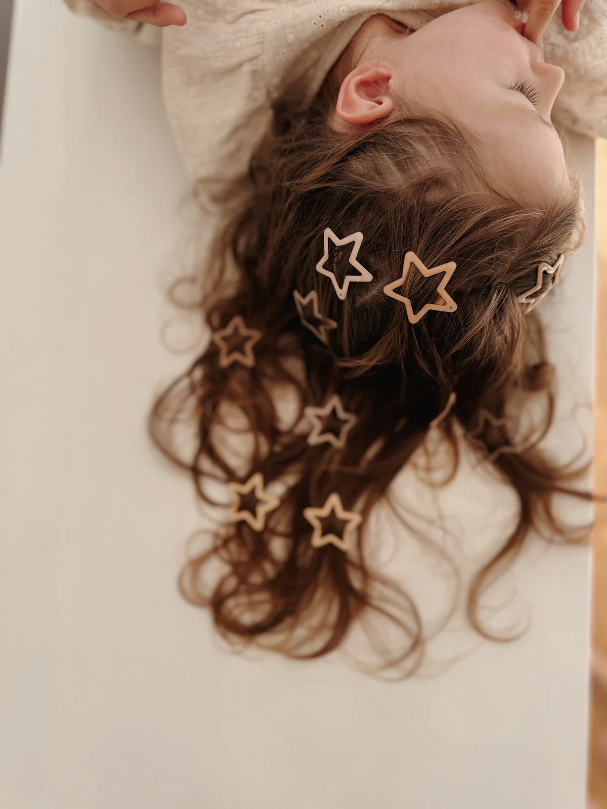 Įneškite šiek tiek magijos į savo šukuoseną su šiuo žavingu segtukų rinkiniu! Rinkinyje rasite 10 blizgių žvaigždučių formos plaukų segtukų, kurie suteiks jūsų įvaizdžiui žaismingumo, spindesio ir romantikos. Puikiai tinka tiek kasdienai, tiek ypatingoms progoms, kai norisi suspindėti šiek tiek ryškiau.
