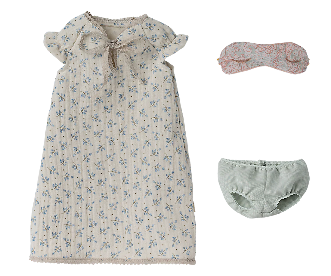Susipažinkite su žavia Maileg didžiąja pele „Maxi Mouse“, pasiruošusia ramiai nakčiai su savo minkštais naktiniais marškiniais. Ši miela pelė yra puikus žaidimų draugas ir švelnus miego palydovas, skatinantis vaikų vaizduotę ir šilto bendravimo akimirkas.
